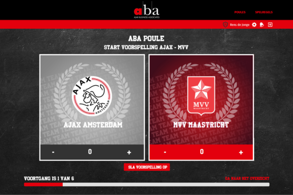 De ABA-poule is een vast onderdeel van elke thuiswedstrijd van Ajax. Leden voorspellen de uitslag en maken kans op exclusieve prijzen, geselecteerd door ABA zelf.