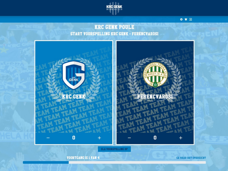 Voor KRC Genk is de Europa League-poule volledig opgemaakt in hun eigen huisstijl. Ons logo en onze kleuren hebben plaatsgemaakt voor het KRC Genk Business Club logo en hun eigen kleurgebruik. Zo sluit de poule perfect aan bij hun wensen